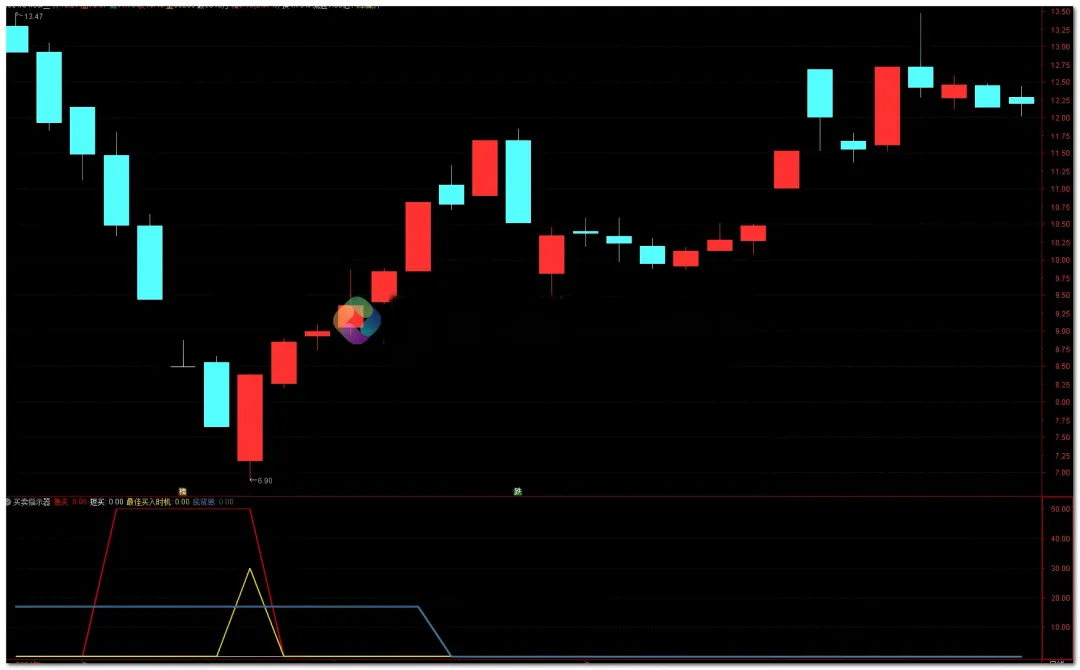 条件 :股价连续阴跌,市场情绪极度低迷。信号 :副图同时出现**红色“急买”柱子和 白色“短买”**柱子。操作 :这说明股价进入了“超卖区”,随时可能反弹。此时不要急着梭哈,打底仓2层 ,博取第二天的反包阳线。