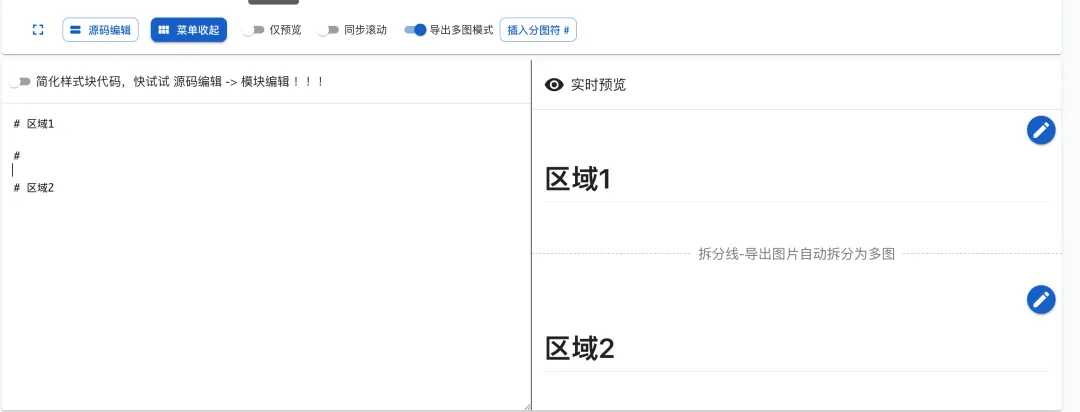 * 切换编辑模式为 模块编辑:直接所见即所得
