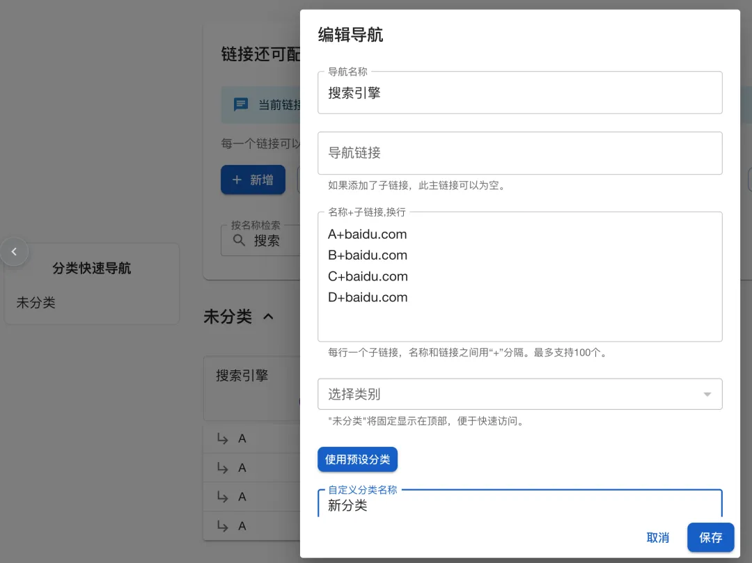 可以自定义背景图,然后支持搜索,自定义分类,还有就是导航组