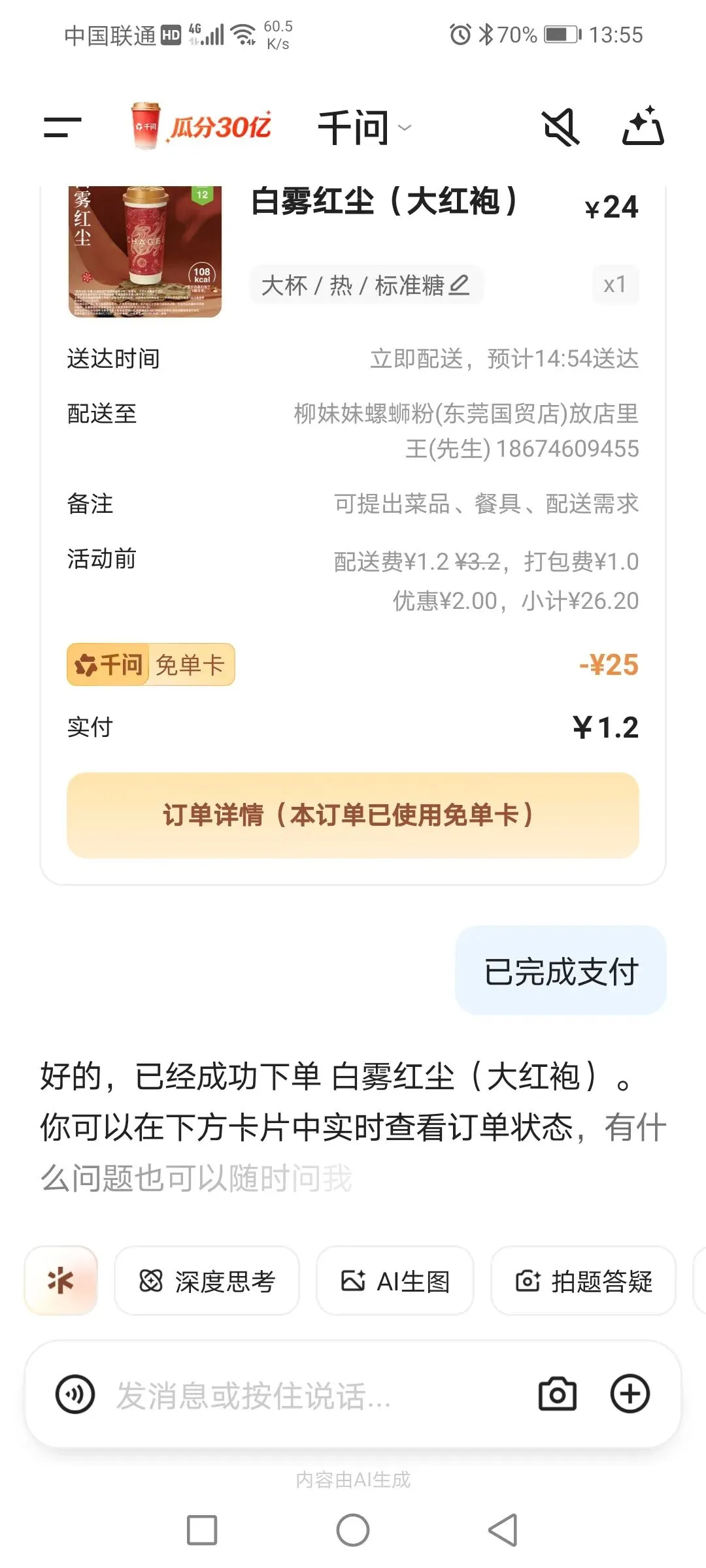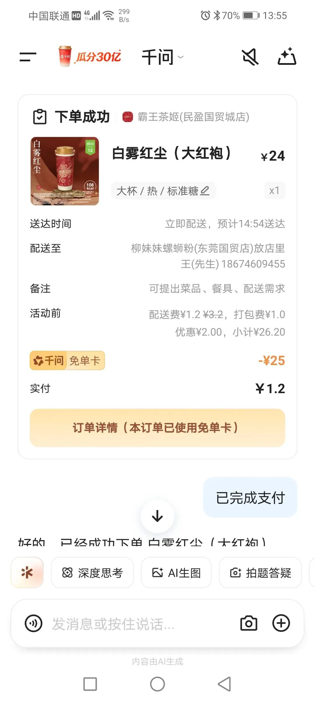 保存二维码,发给千问 就可以领取免单卡!小编已经用了几次了
