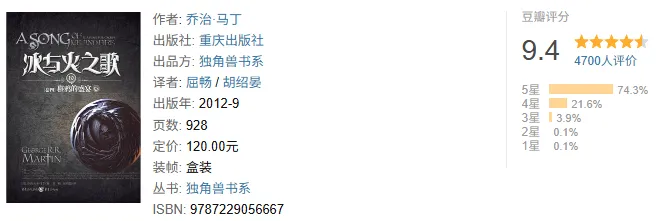 《冰与火之歌·卷四·群鸦的盛宴》pdf&mobi&epub&txt&azw3电子书 PS:以上介绍截图来源于豆瓣读书 关注公众号并回复“提取码”获取提取码!!! 留言想要看的书~ ↓↓↓点击阅读原文,获取资源链接
