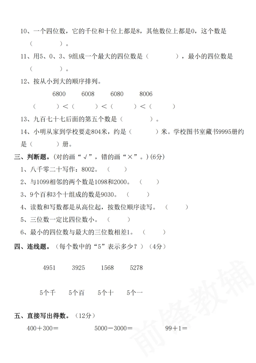 【免费下载】二年级(下)数学 第七单元拔尖测试卷,PDF电子版,共4页,可打印