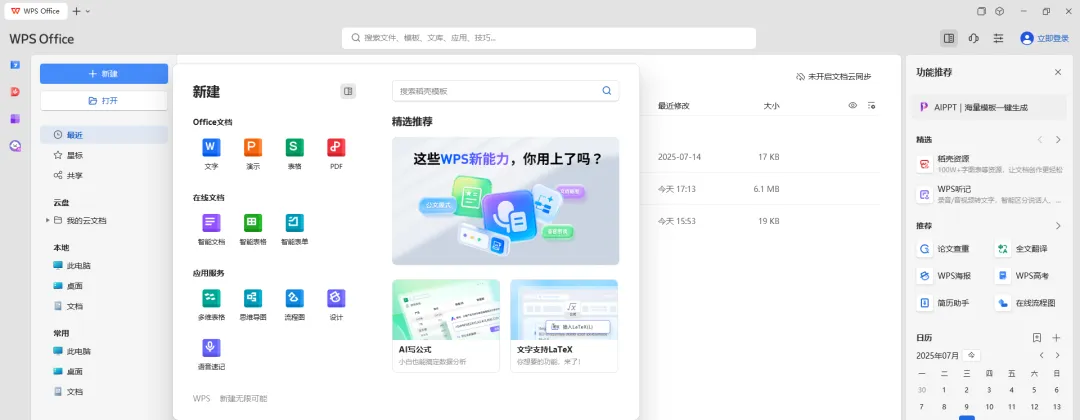 WPS专业版主打精简、不需要登录即可使用、无广告。