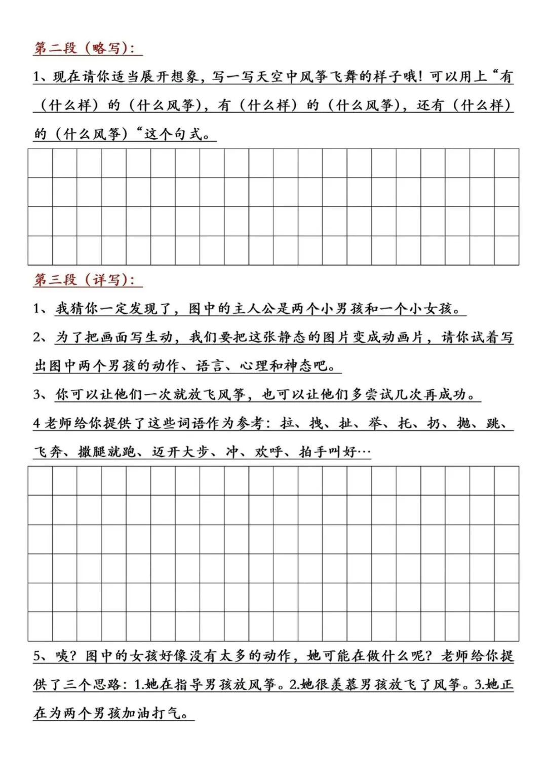 【免费下载】三年级(下)语文 放风筝习作练笔,PDF电子版,共4页,可打印