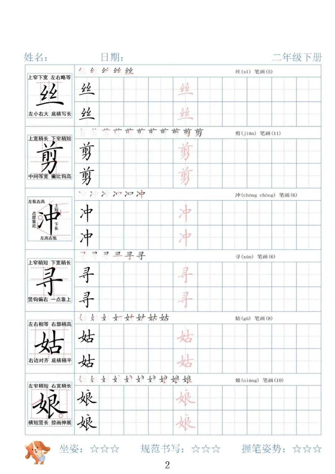 【免费下载】二年级下语文26春精讲生字字帖,PDF电子版,共42页,可打印