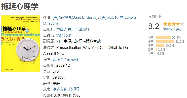 《拖延心理学》pdf+epub+mobi+azw3电子书免费下载 《拖延心理学》电子版下载链接,点击文章末尾左下方“阅读原文”自动跳转。 代找电子书加微:350775395,加微备注领取电子资料可免费领取20T电子资料合集(古籍/电子书/小说/游戏/软件工具/电影/电视剧/动漫/PPT素材/教辅资料/烹饪教程/各类学习文档等电子资源)。 特别提醒:电子资料仅供个人学习使用,链接随时失效,请及时保存到个人网盘!