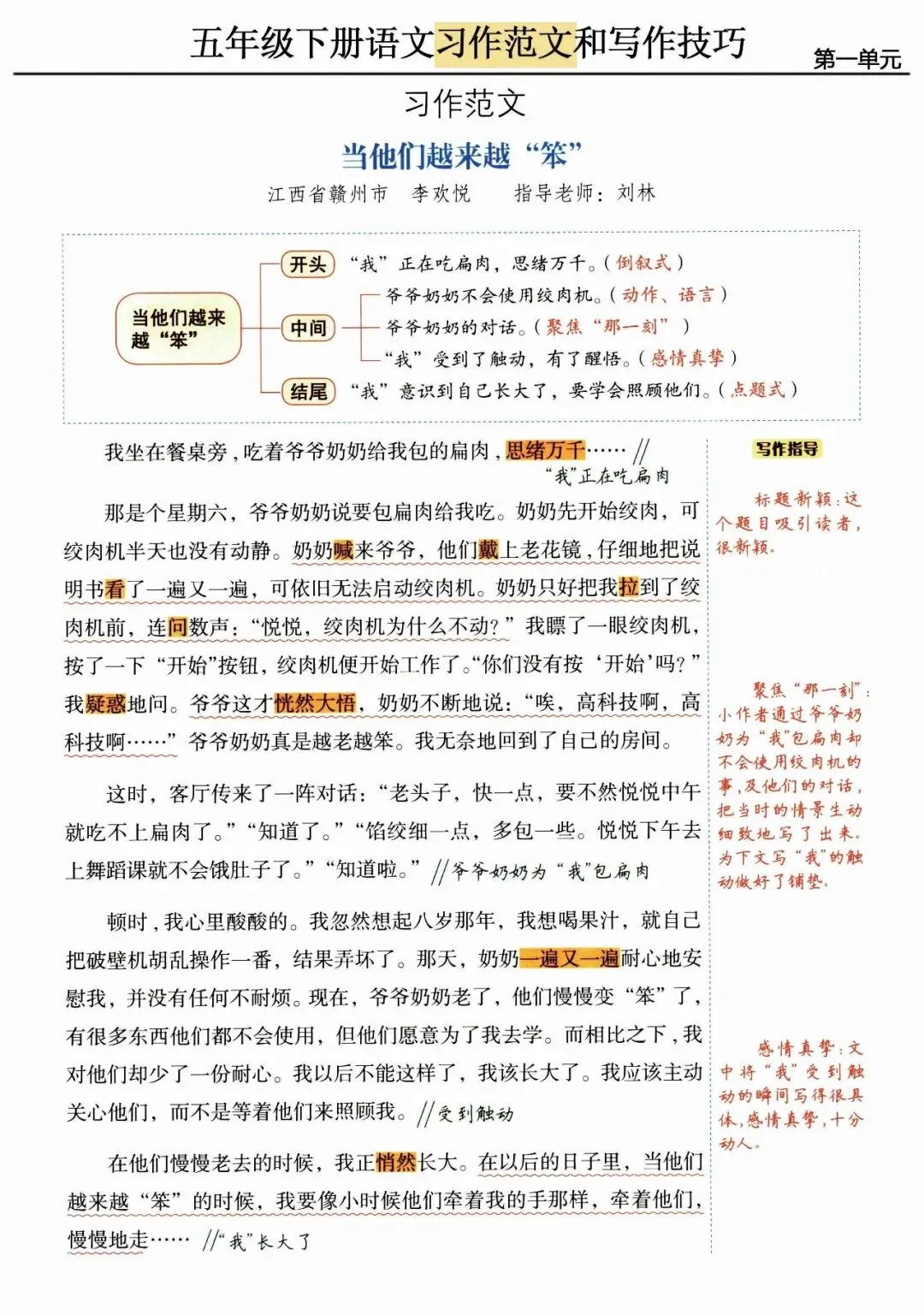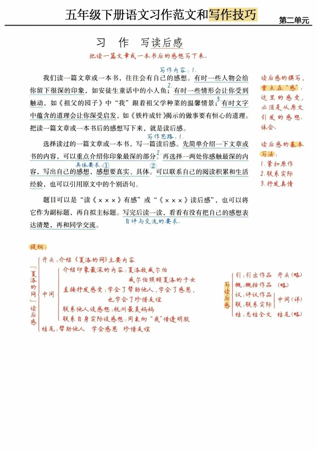 五年级(下)语文 单元习作范文及技巧点拨