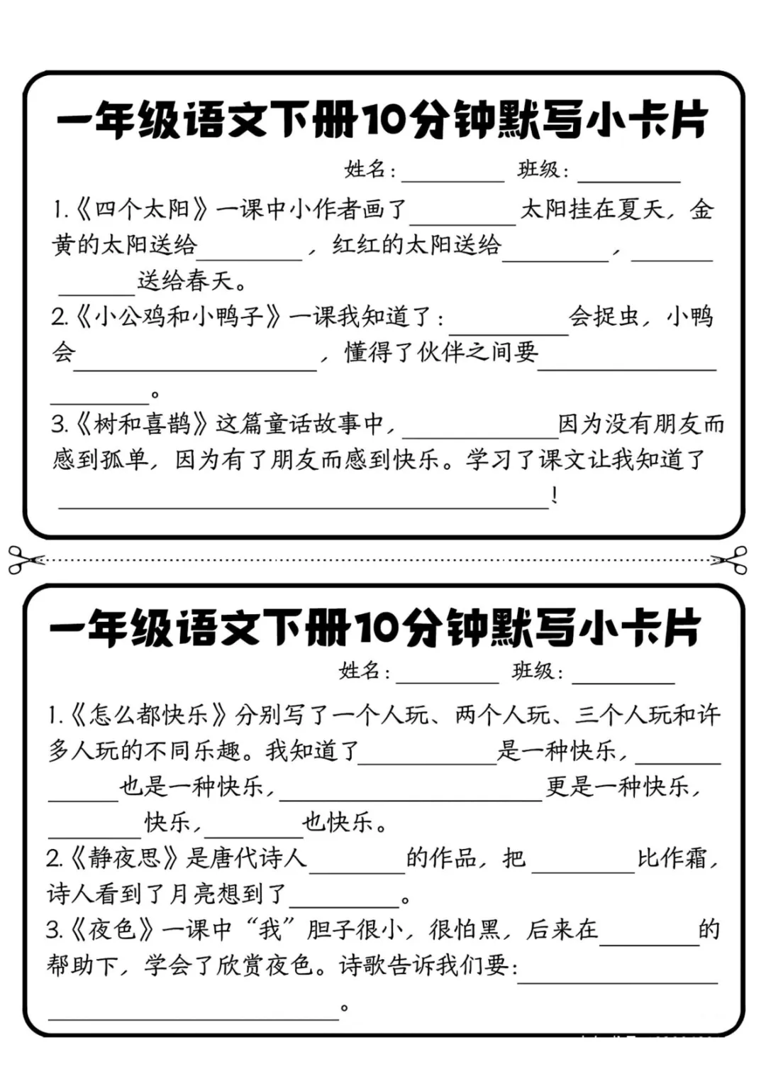 一年级(下)语文 10分钟默写小卡片