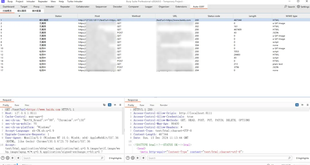 Auto-SSRF是一款基于BurpSuite MontoyaApi的自动SSRF漏洞探测插件, 捕获BurpSuite 流经Passive Audit、Proxy、Repeater的流量进行SSRF漏洞探测分析。