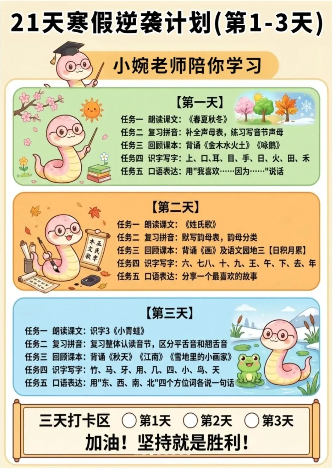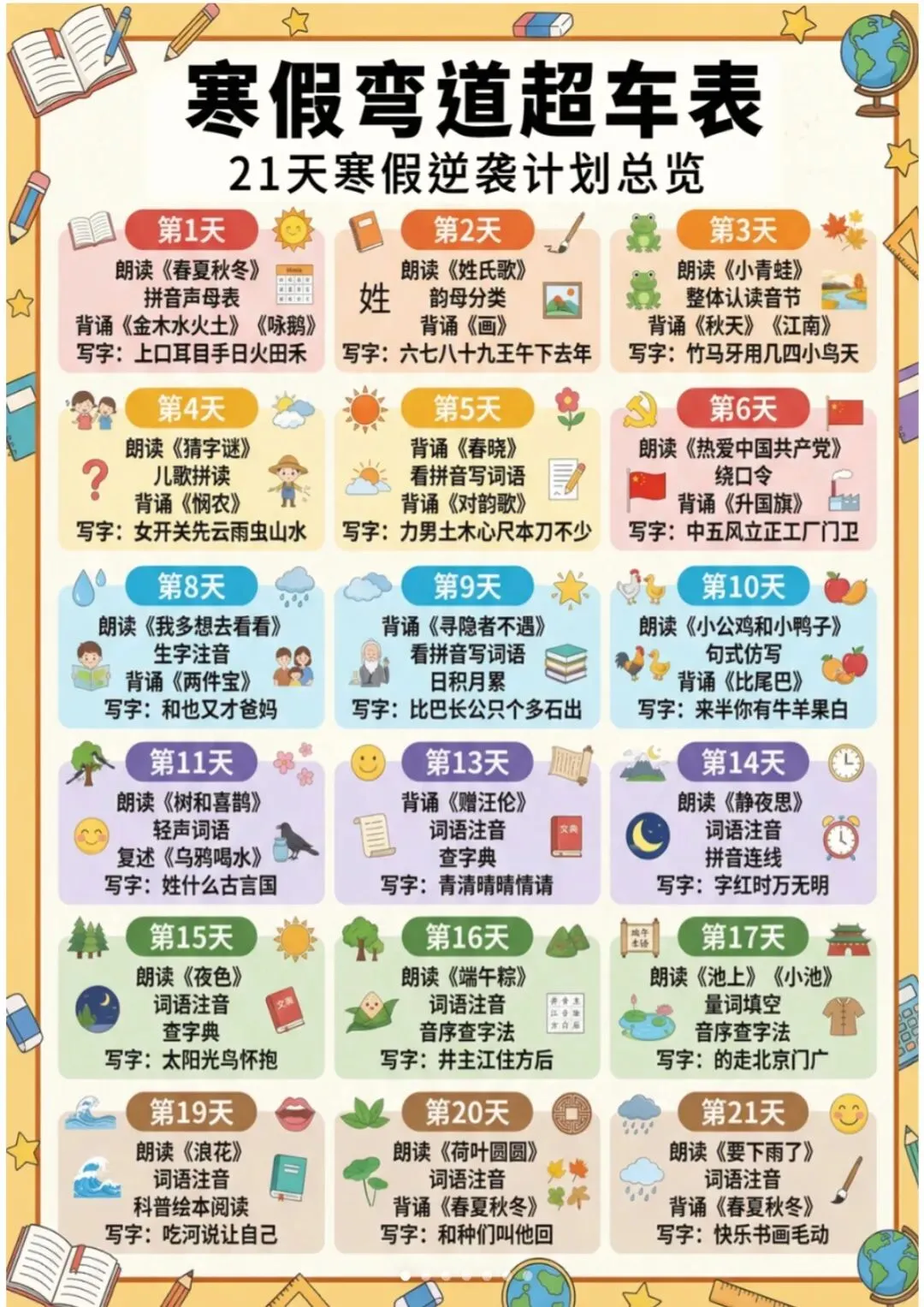 一年级(下)语文 21天寒假逆袭计划