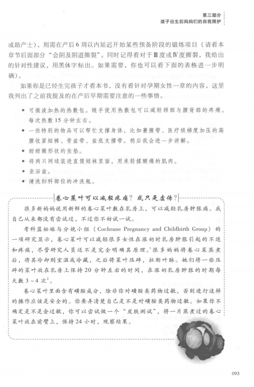 在运动方面,它提供了大量针对产后特殊生理变化的专属练习,并配有详细图示。