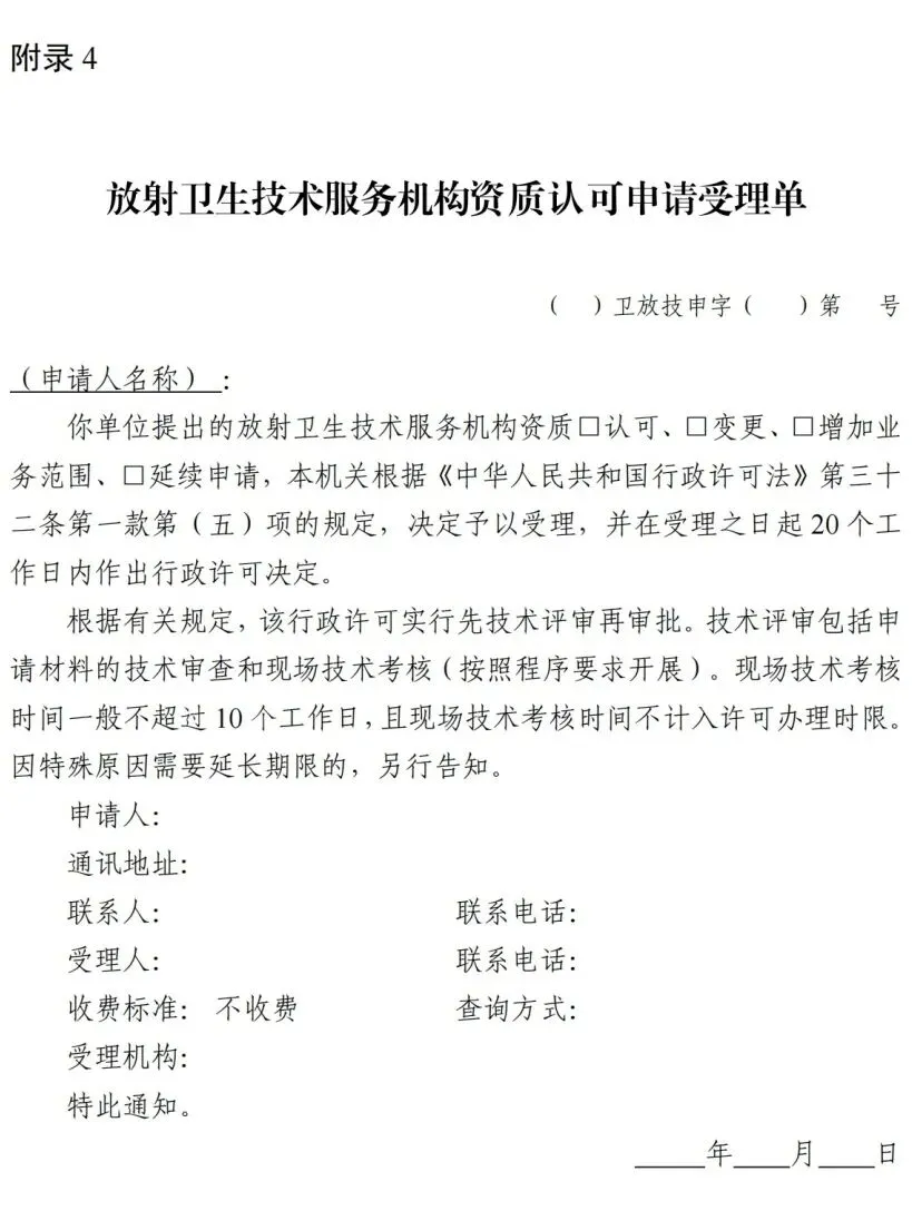 4.放射卫生技术服务机构资质认可申请受理单