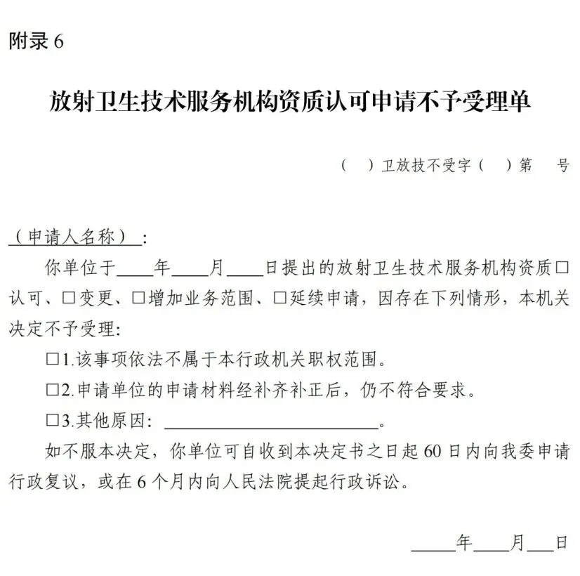 6.放射卫生技术服务机构资质认可申请不予受理单