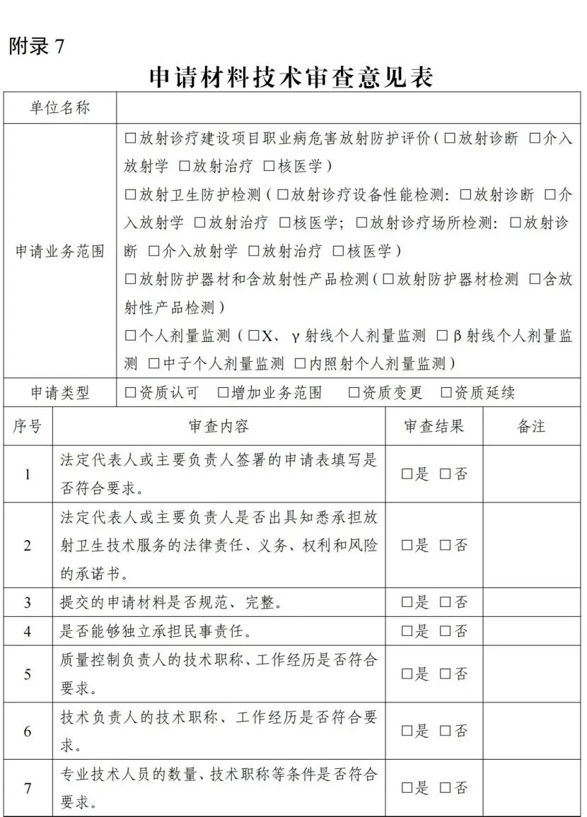 7.由请材料技术审查意见表