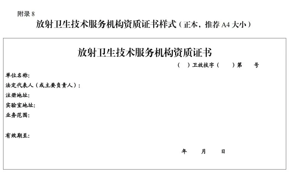 8.放射卫生技术服务机构资质证书样式