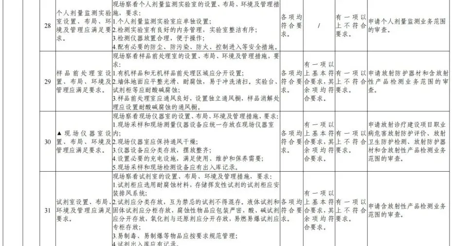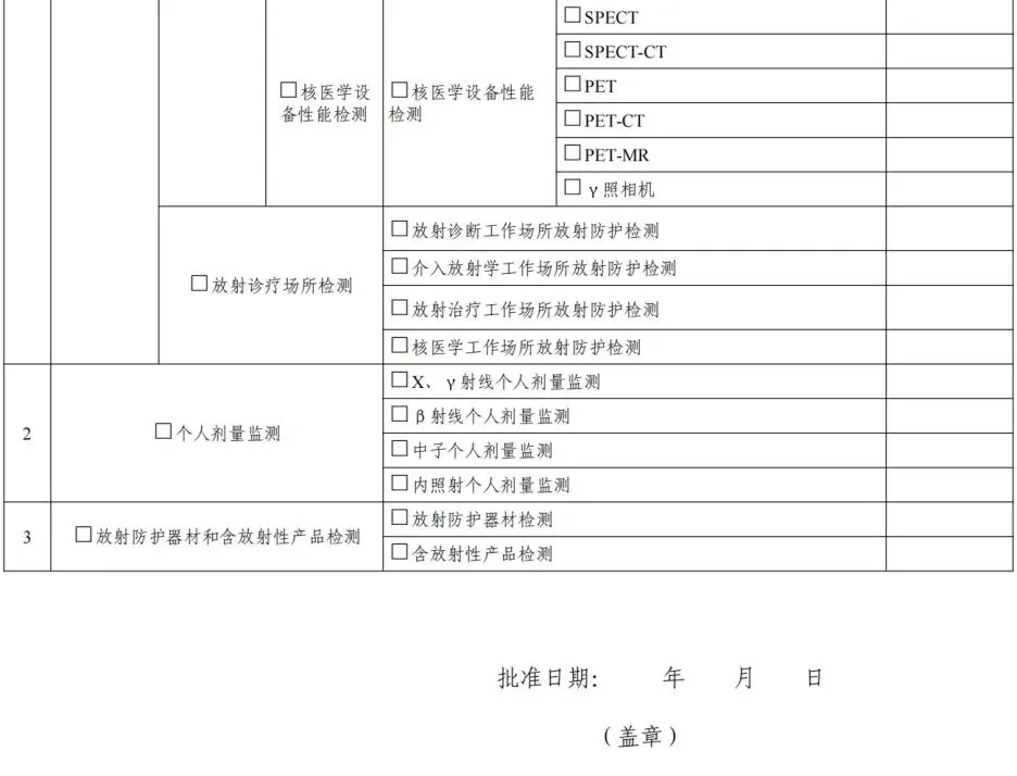 ③申请个人剂量监测、含放射性应品检测的,应进行现场盲样考核。宜样考核不合格的,此检测项目及参数不予批准。