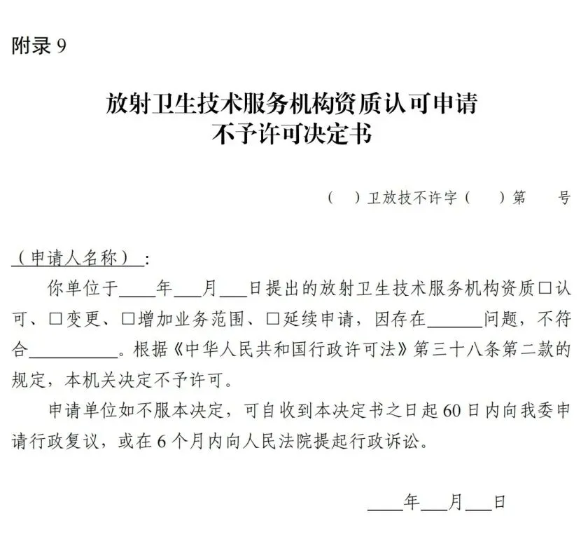 9.放射卫生技术服务机构资质认可申请不予许可决定书