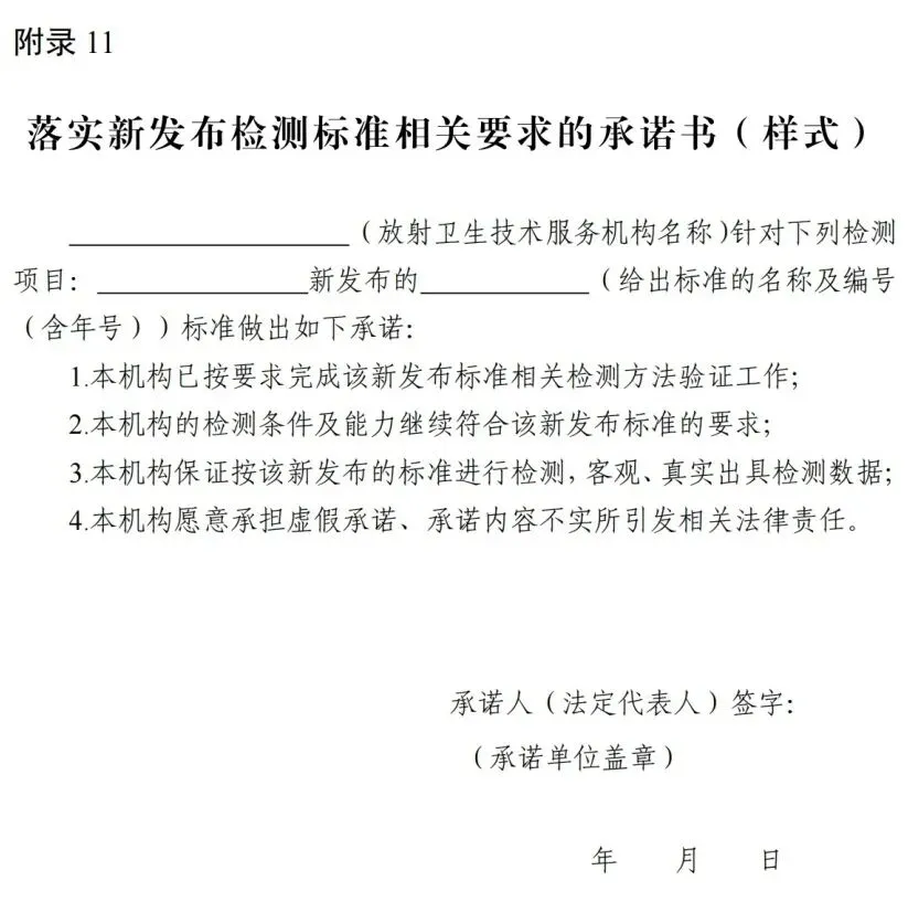 11.落实新发布检测标准相关要求的承诺书(样式)