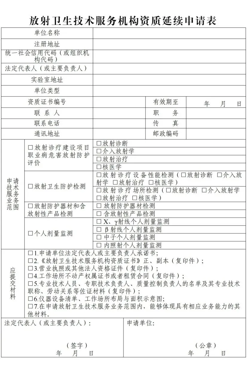 13.放射卫生技术服务机构资质延续申请表