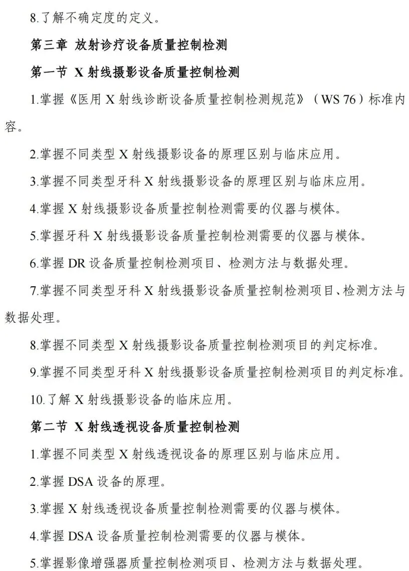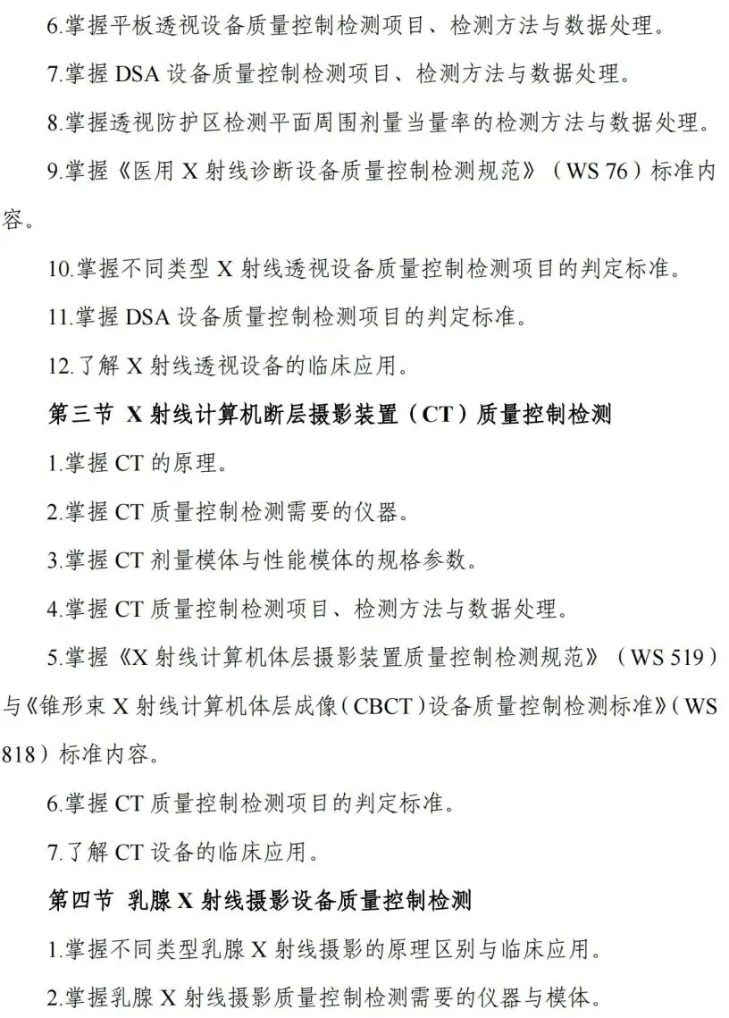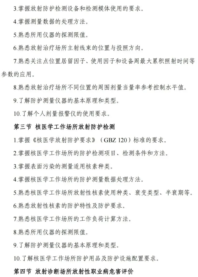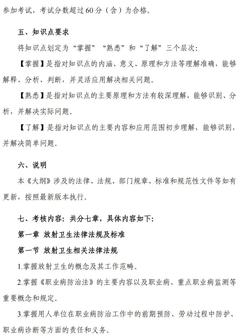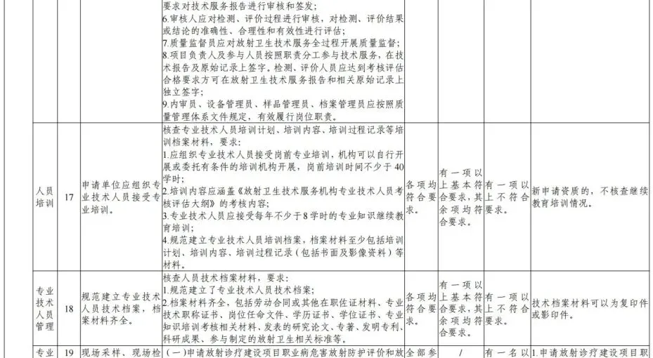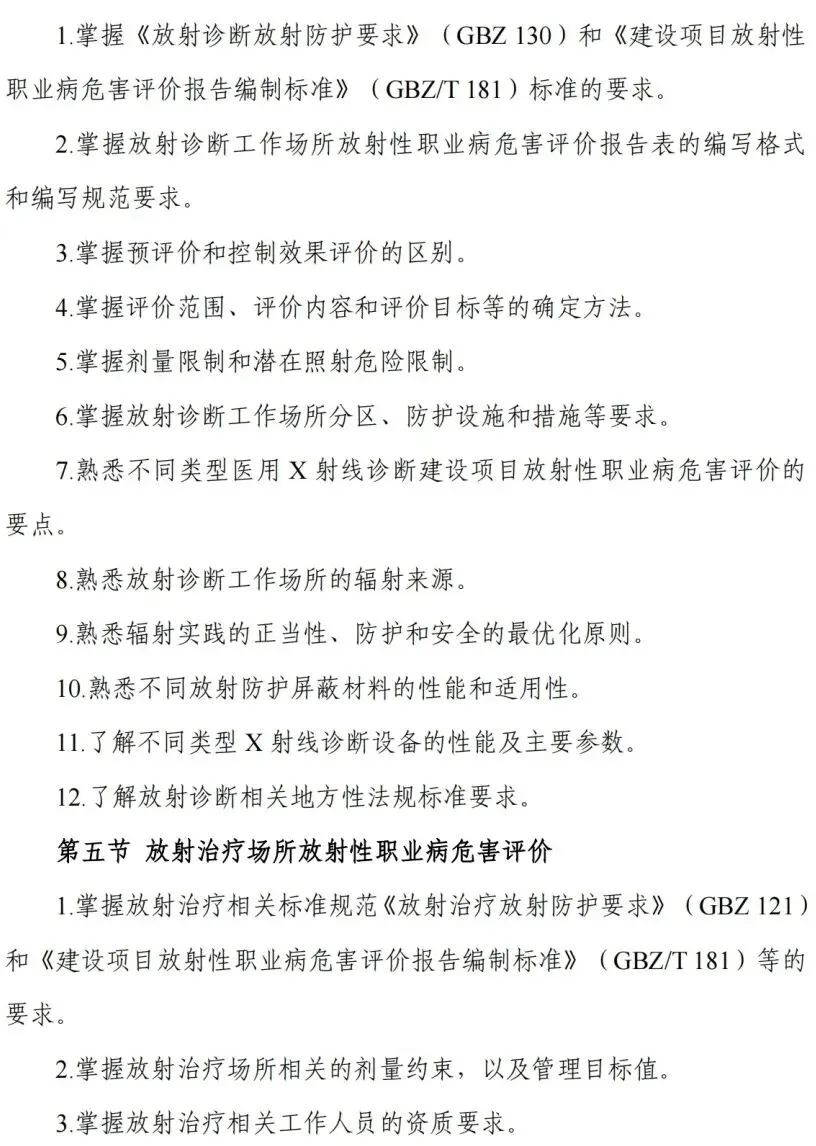 考核内容:考核应涵盖放射卫生技术服务相关法规标准规范、质量管理和相关专业知识。