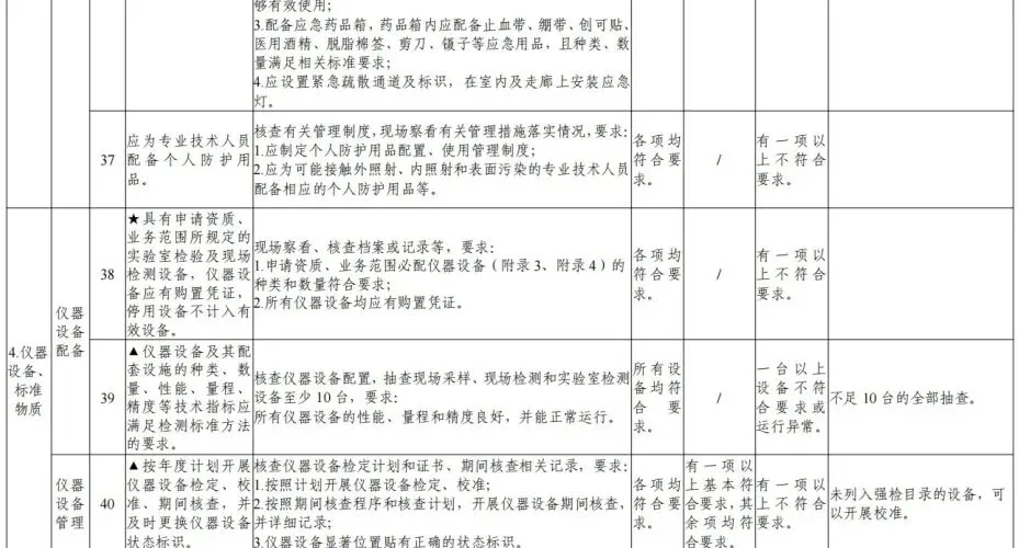 2.仪器设备放置、标识、检定或校准、期间核查、维护和使用;