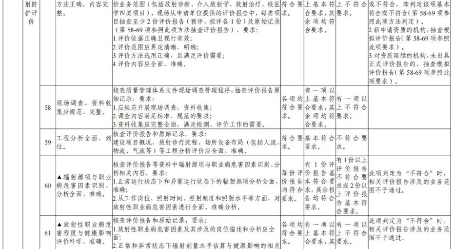 (2)评价能力审核认定。由请的每类评价项目(放射诊断、介入放射学、放射治疗、核医学),专家现场抽查两份放射诊疗建设项目职业病危害放射防护评价报告(一份预评价报告、一份控制效果评价报告,未出具正式评价报告的,抽查模拟评价报告),对评价报告的全面性、准确性、针对性、有效性、合法性等方面评价能力进行审核认定。