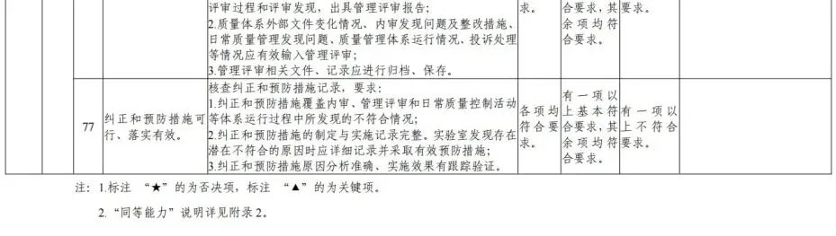 (3)检测项目能力认定。专家通过审核检测仪器设备配置情况、审核检测方法建立材料、开展检测操作技能考核(现场检测、现场演示、盲样考核)、查验检测能力比对(验证)结果等方式,对申请单位申请的检测项目进行综合能力认定。参加检测能力比对(验证)结果合格项目可作为检测项目能力确认的依据;已取得检验检测机构资质认定(CMA)或中国合格评定国家认可委员会实验室认可(CNAS)的有效期内的检测项目,可作为检测项目能力确认的依据。