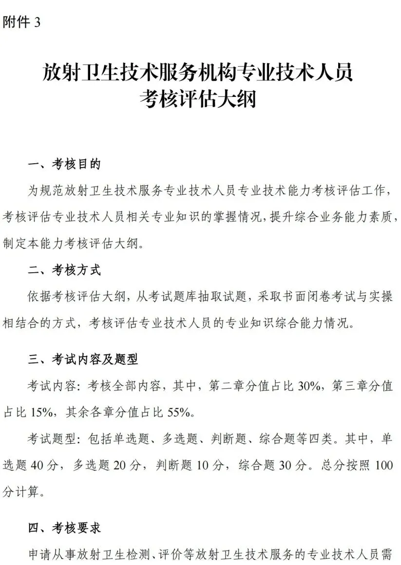 附件3 放射卫生技术服务机构专业技术人员考核评估大纲