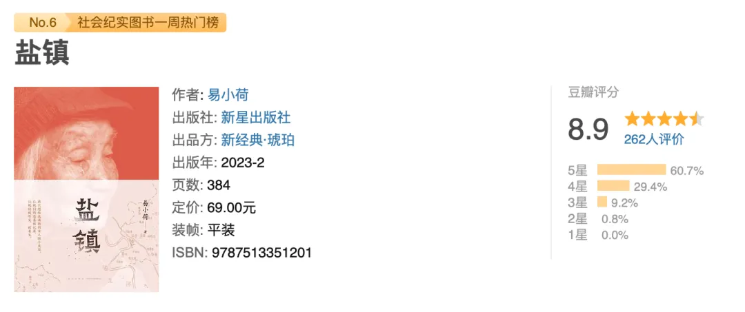 说回《盐镇》。我和作者是同一位编辑杨老师。《盐镇》刚出的时候,杨老师就把新书信息发给我,意思不言自明,要让我推荐一下。