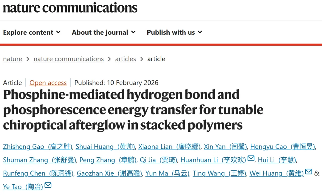 Phosphine-mediated hydrogen bond and phosphorescence energy transfer for tunable chiroptical afterglow in stacked polymers,Nature Communications,2026.