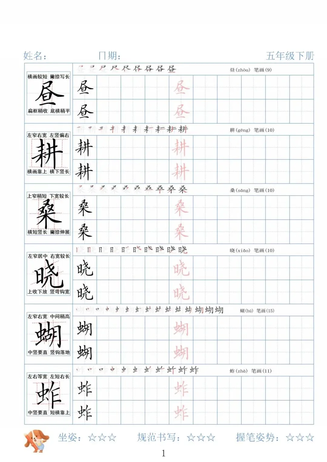 【免费下载】五年级下语文26春精讲生字字帖,PDF电子版,共30页,可打印