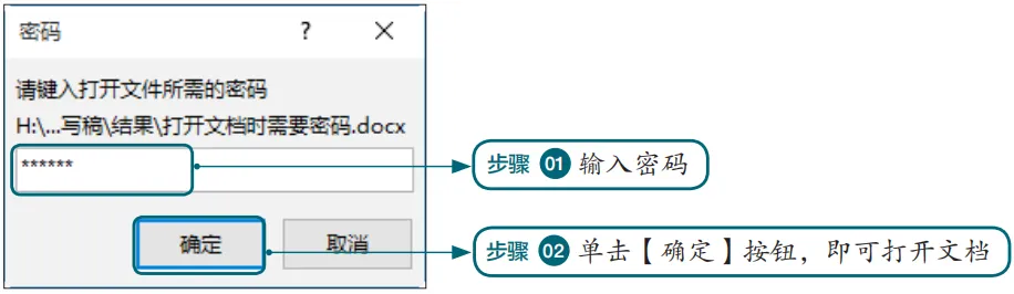 文档加密设置完成后,当再次打开文档时会弹出【密码】对话框,只有输入正确的密码才能打开文档,如下图所示。