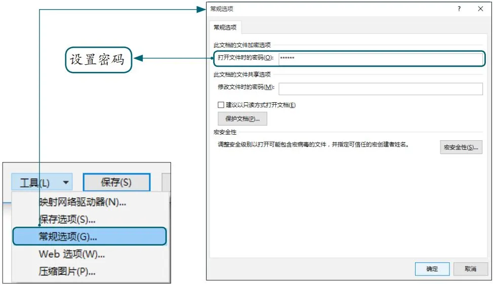 文档的加密保护是指通过设置文档打开密码,使他人无法直接打开文档。设置文档打开密码的方法有两种。