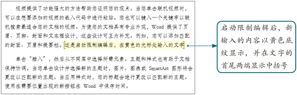 启动限制编辑后,文档中会出现一个黄色的光标,在光标处可以输入文字,但文档中已有的内容不能被编辑,如下图所示。