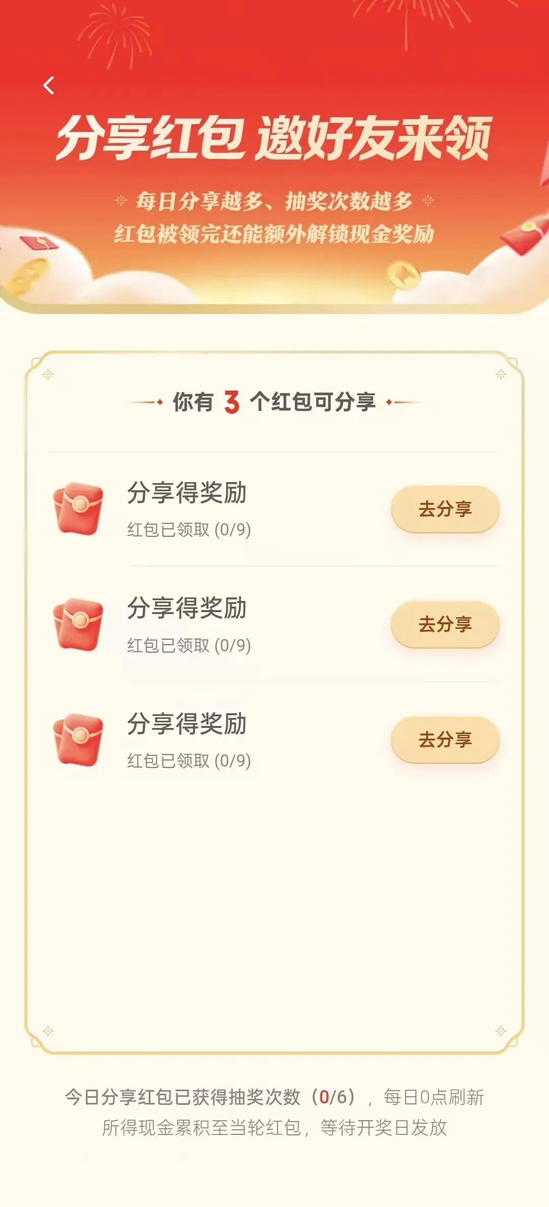 额外福利:转发活动链接给微信/QQ好友,好友拆包双方均可获得现金,分享者额外获1次抽奖机会(无上限)。