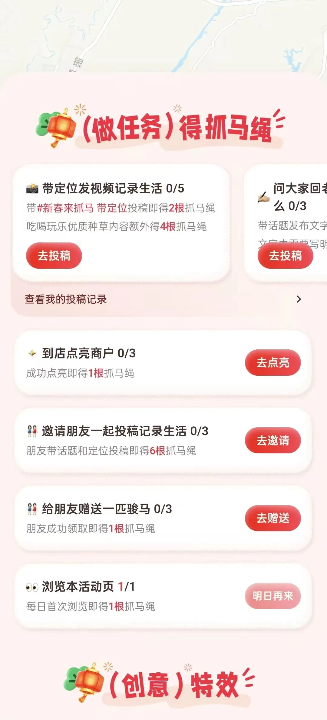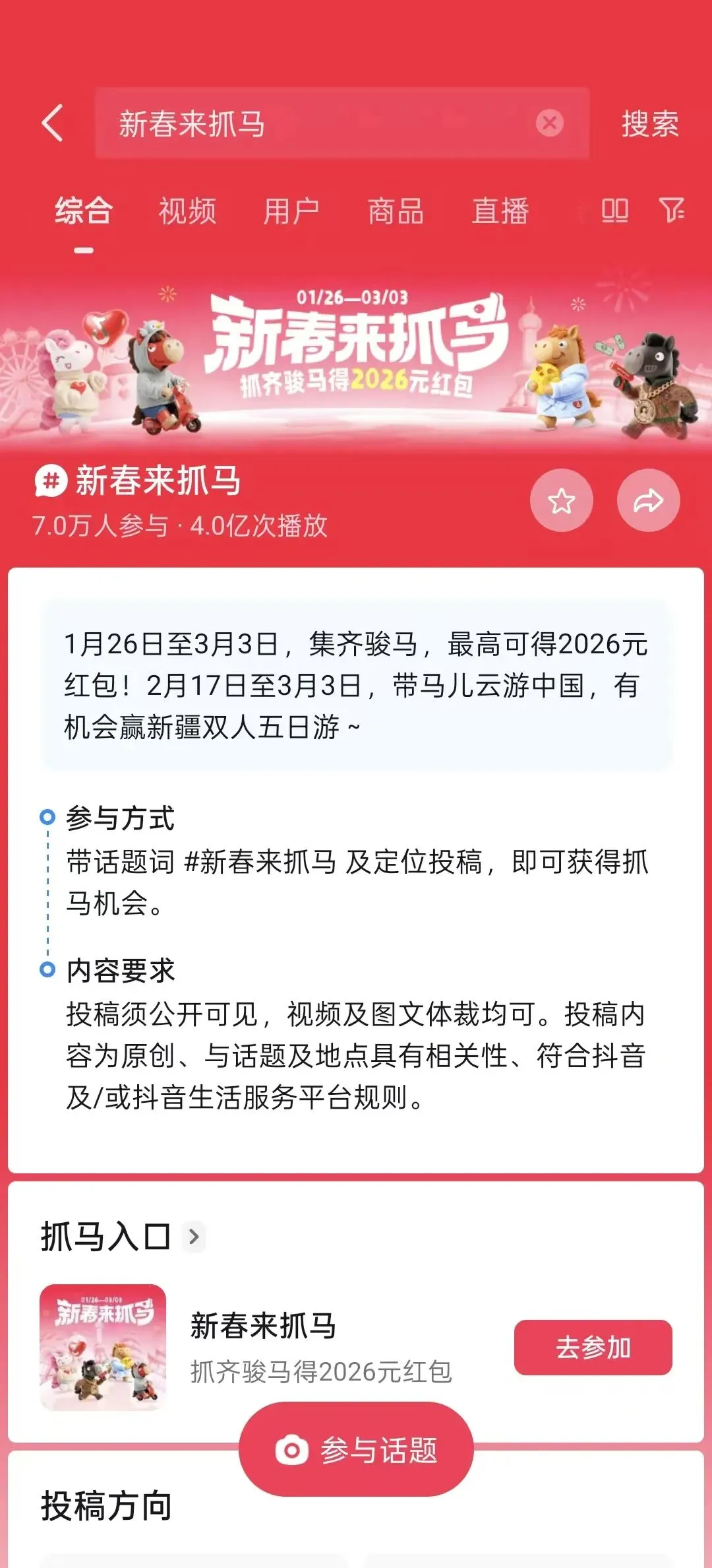 首页搜索「跃马攀峰」或「新春来抓马」,点击进入活动主会场;