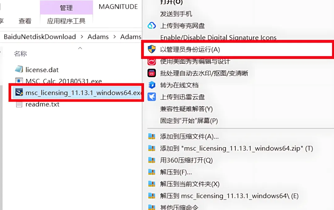 7.鼠标右击该文件夹下的【msc_licensing_11.13.1_windows64】选择【以管理员身份运行】。