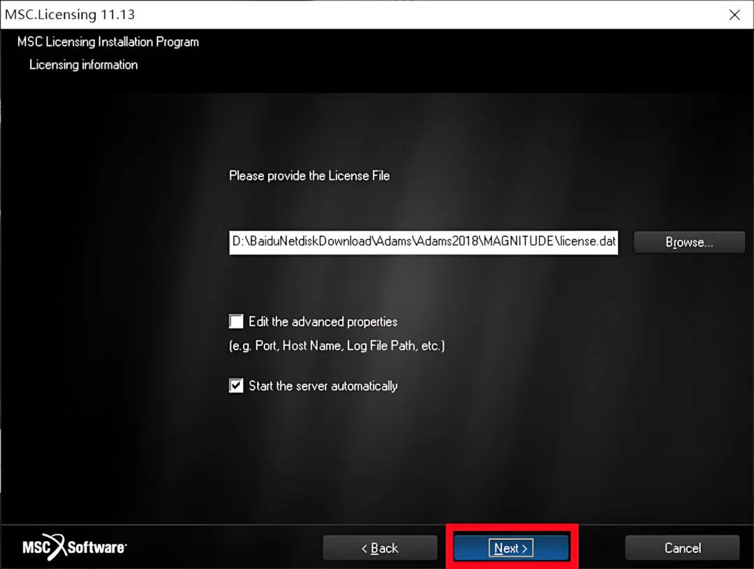 10.选择【Install MSC License Servers Only】,点击【Next】。