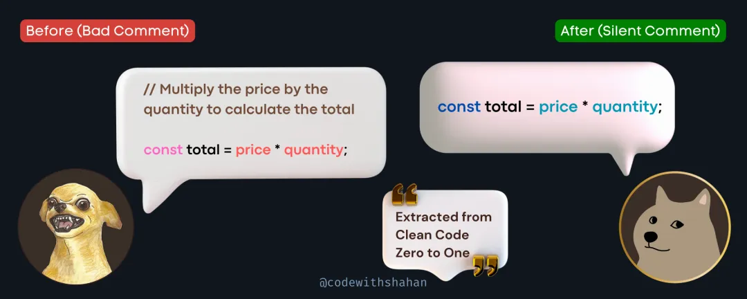 🪧 好的注释要讲“为什么”,而不是“怎么做”或“是什么”。如果开发者连代码是怎么工作的都看不懂,那他们更不可能理解背后的“为什么”。