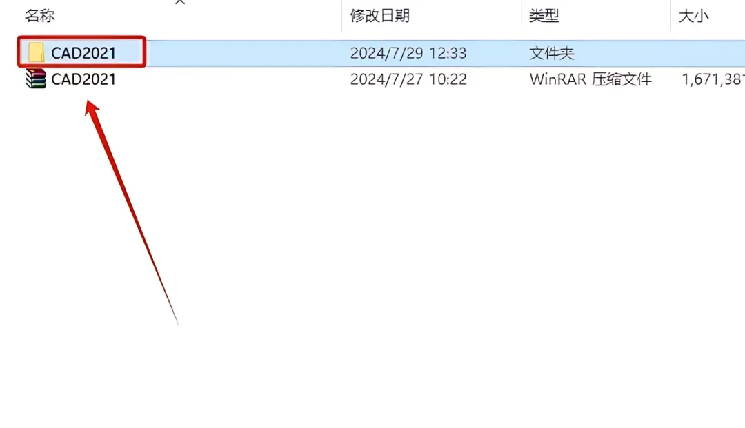 1.打开下载好的CAD2021软件安装包,右击压缩包选择【解压到当前文件夹】。