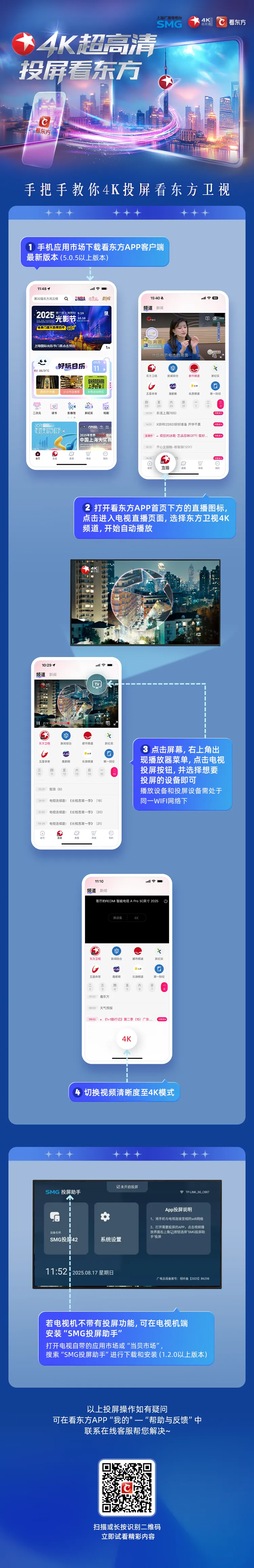 现在只要在看东方APP上点击投屏