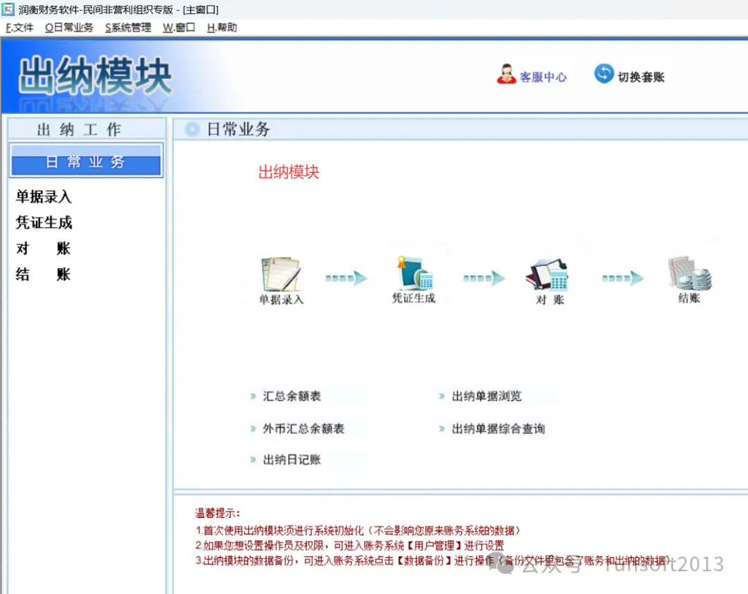 4)出纳模块:可录入或导入现金/银行收支流水账,并自动转成凭证到总账。↓