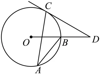 两条弦,∠BAC=25°,过点C的切线与OB的延长线交于点D,则∠D的度数为()