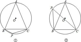 20. 如图,⊙O是△ABC的外接圆,AB=AC,P是⊙O上一点,请你只用无刻度的直尺,分别画出图①和图②中∠P的平分线.