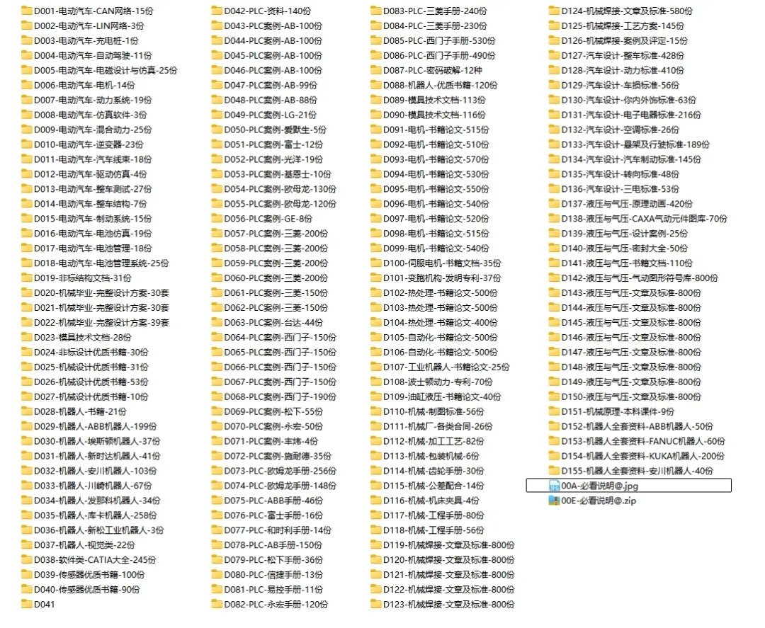 【学习文档】D154-机器人全套资料-KUKA机器人-200份.zip 👉领取方式一: 👉领取方式二:转发文章到朋友圈,联系小助理领取 👉领取方式三:留言区复制链接打开 关注微信公众号“机械智库”,获取更多相关资源。 注意事项:本文仅是图片视频集,仅供欣赏。如需共享,请遵守本公众号首页“更多图纸”中的“免责声明”。