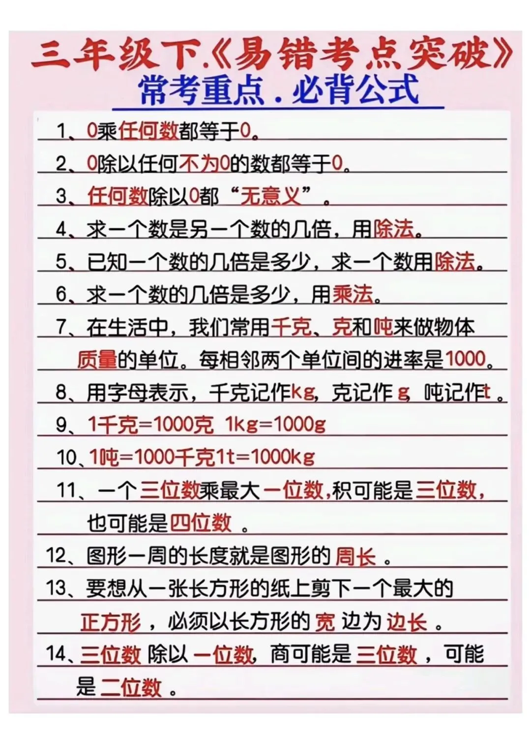 三年级数学下册《易错考点突破》,家长可免费下载打印出来,帮助孩子学习,完整高清电子版,下载方式见文末。
