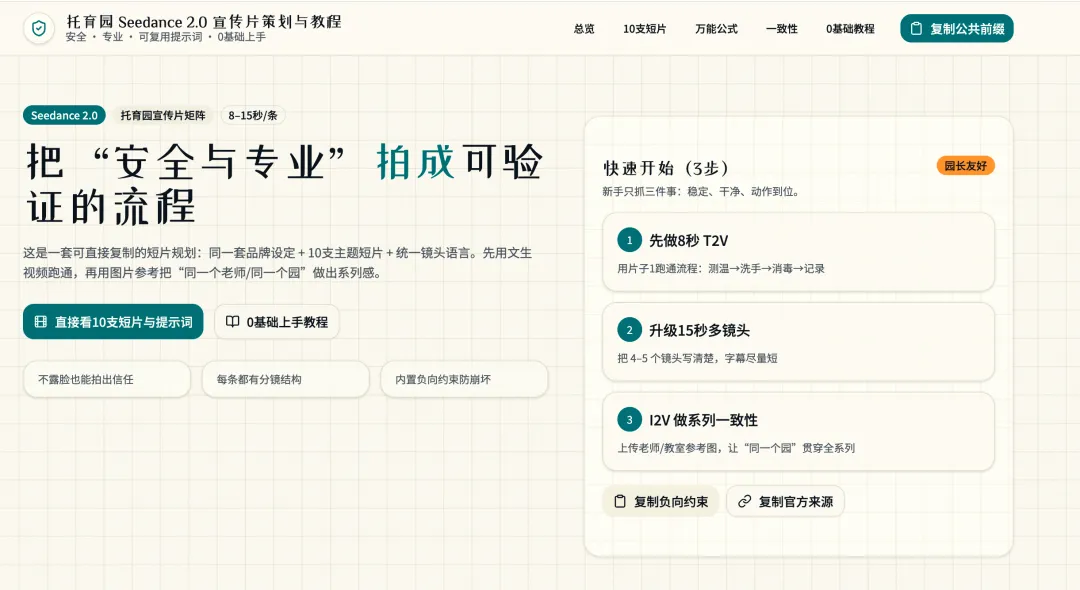 教程手册免费下载 | 托育园如何玩转Seedance2.0,请AI帮你视频招生