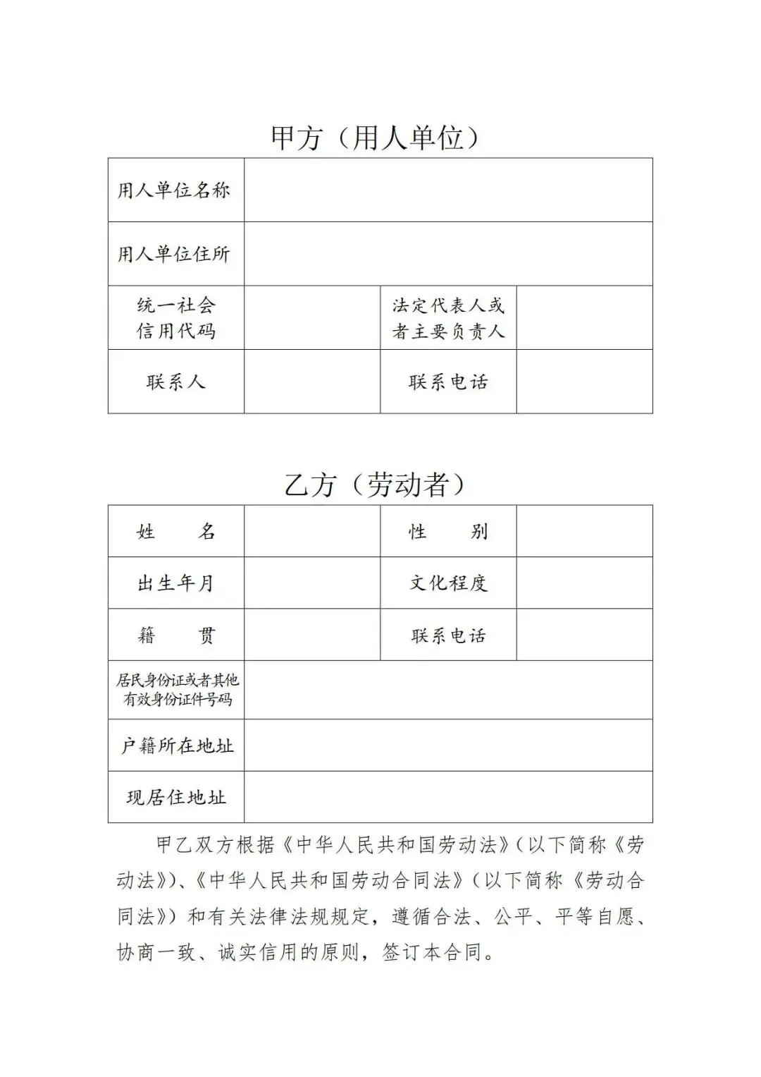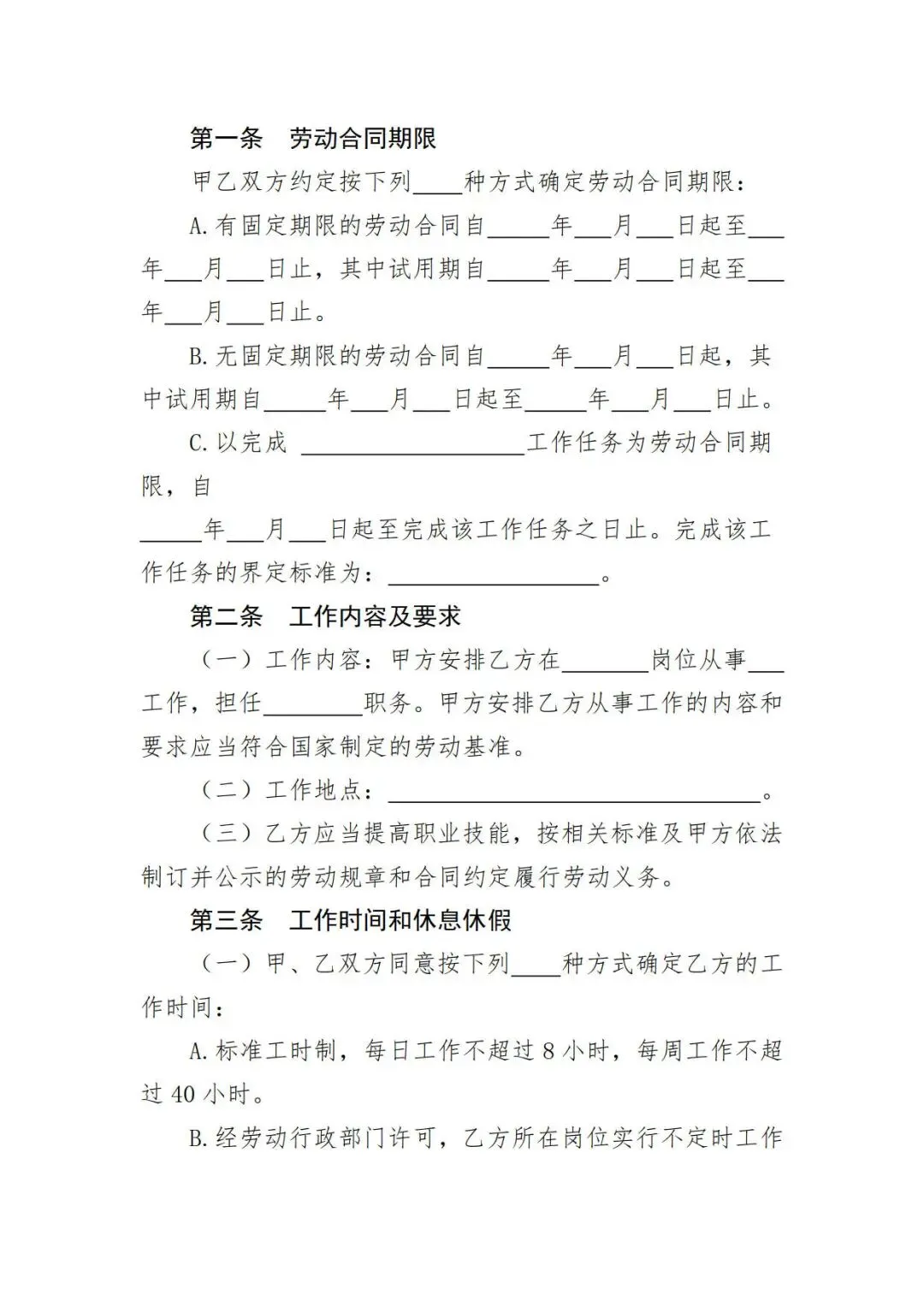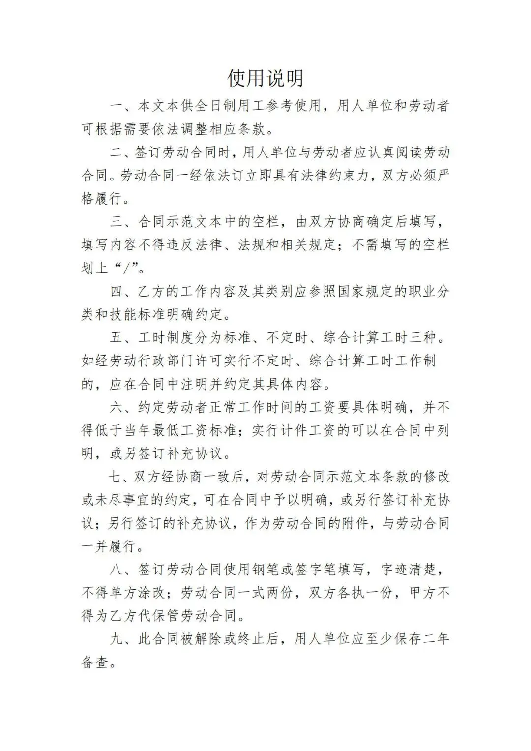 人社局2026年全日制劳动合同范本,WORD文档电子版,可免费下载打印