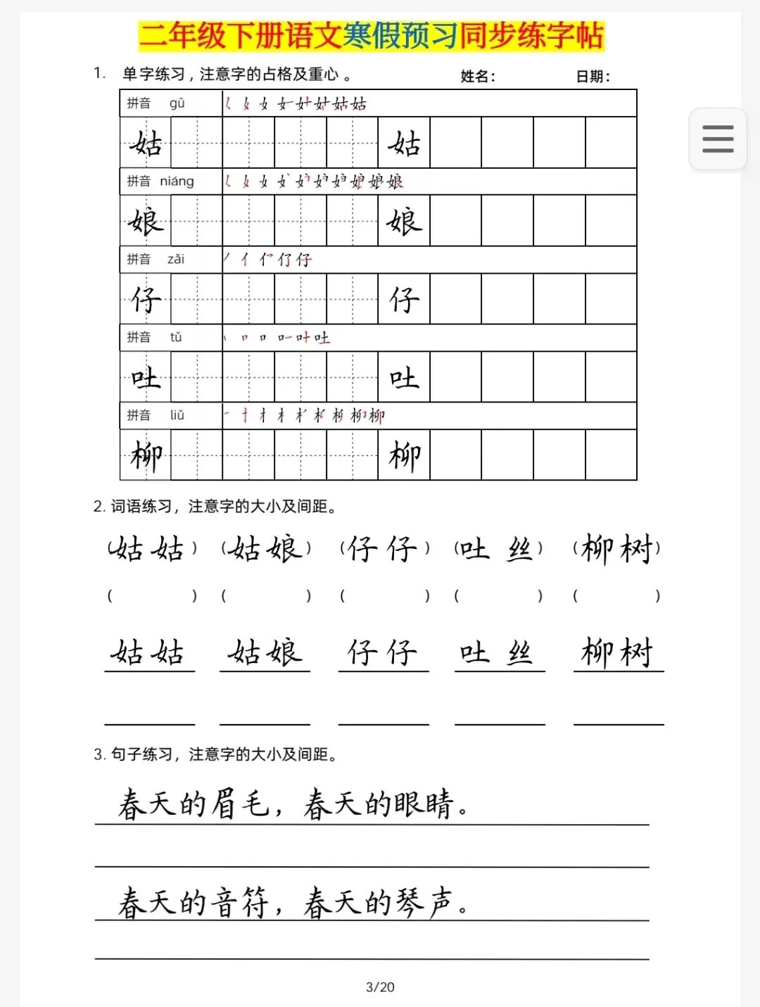 二年级下册语文楷书2.pdf 我用夸克网盘给你分享了「二年级下册语文楷书2」,点击链接或复制整段内容,打开「夸克APP」即可获取。 /~86fe3L28pt~:/ 链接:https://pan.quark.cn/s/4b771751fa99