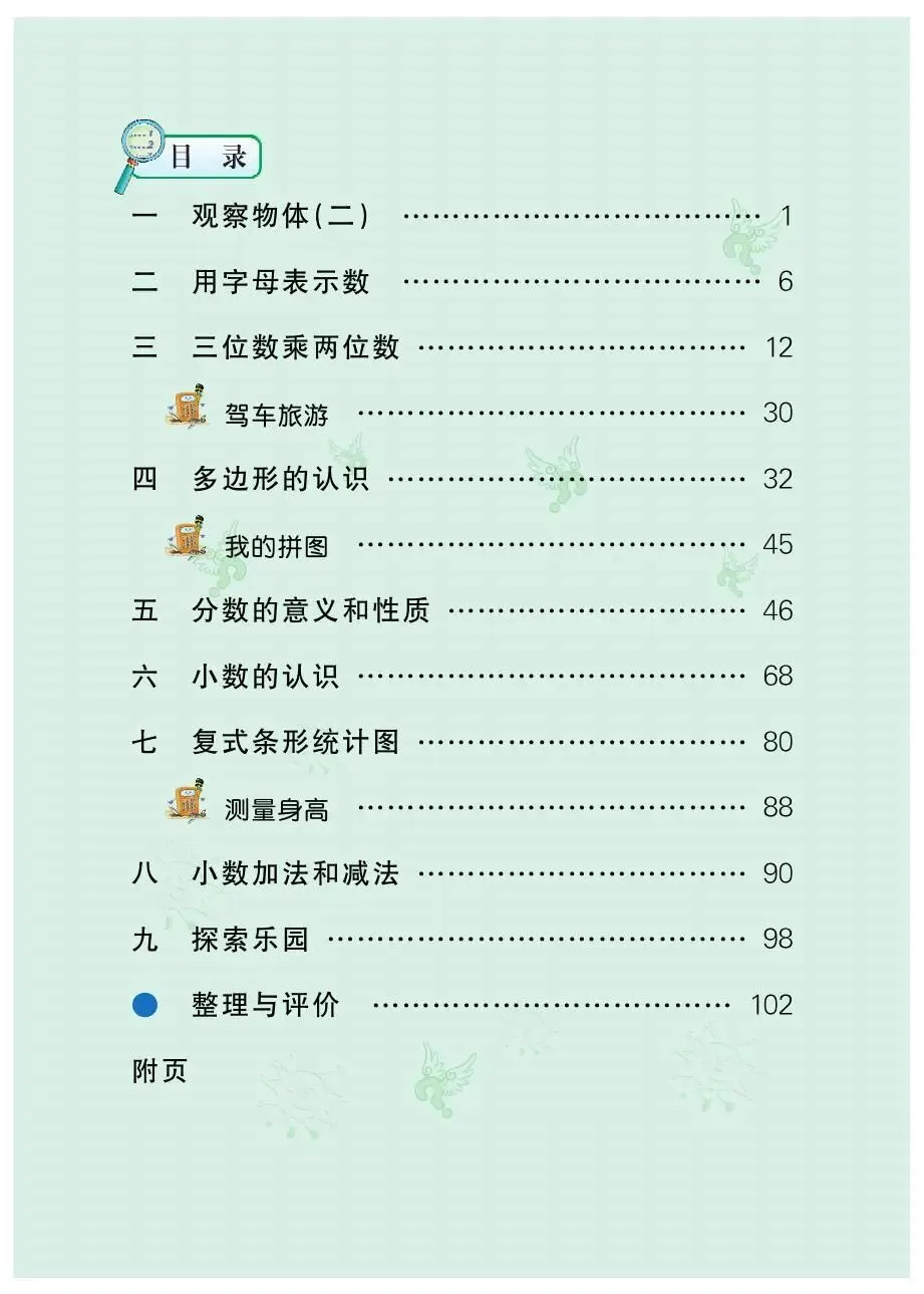 以下为部分内容展示,下载完整冀教版小学四年级数学下册电子版教材,本教材是2026年春季最新PDF版,请到页尾【免费资料下载】。